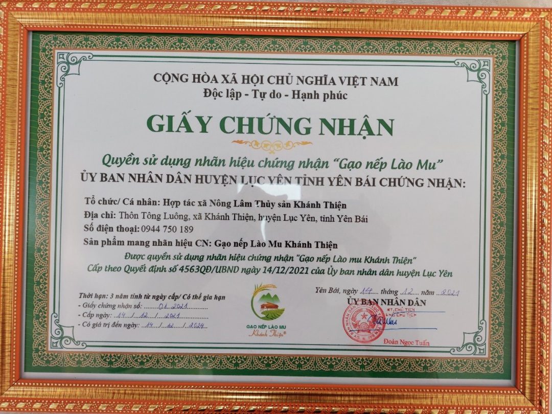 Lục Yên công bố văn bằng bảo hộ nhãn hiệu chứng nhận “Gạo nếp Lào mu Khánh Thiện”